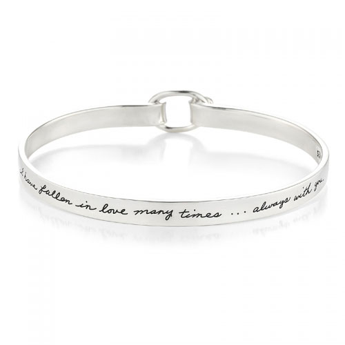 My favorite is the “Love” Sterling Silver Rim Bracelet.