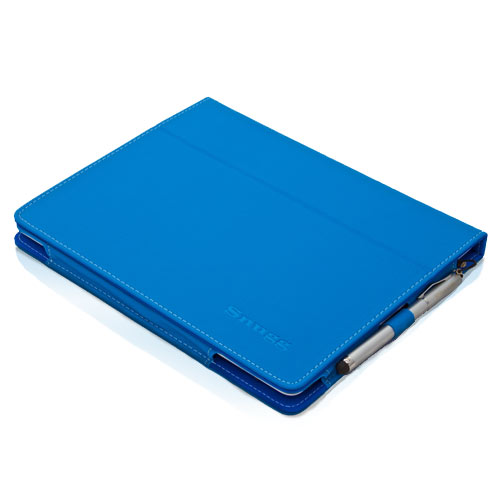 The case features striking electric blue PU leather with soft lining and a stylus holder that can actually tuck the loop away to hide it.