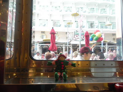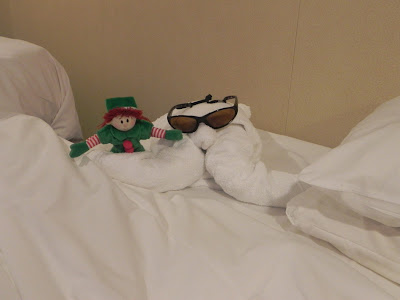 You never know what she is up to or where she is going to show….We found that out firsthand when she decided to show up in our stateroom the third day of our cruise…I can not tell you how excited my daughter was when she found her new little friend there in her bed!